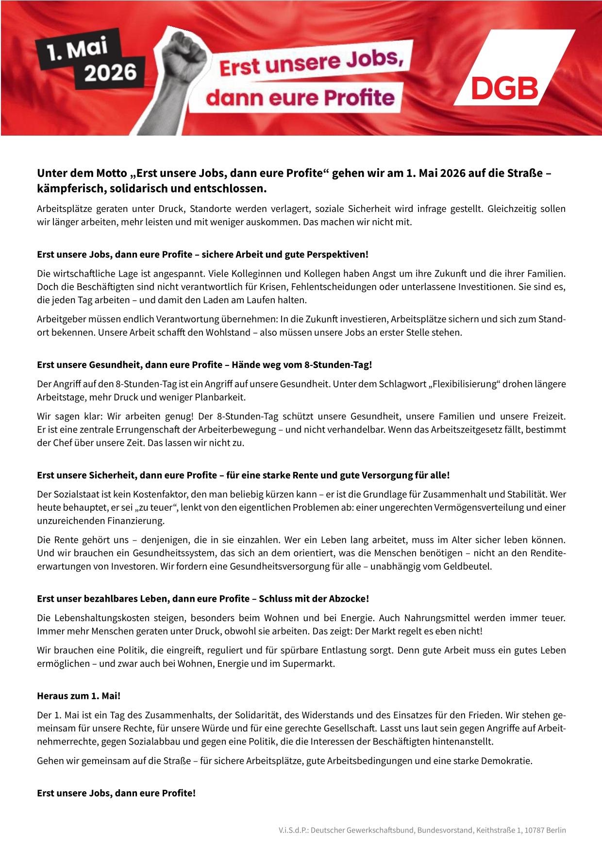 In Unna veranstaltet der DGB-Kreisverband ab 11 Uhr auf dem Platz der Kulturen eine Maiveranstaltung.